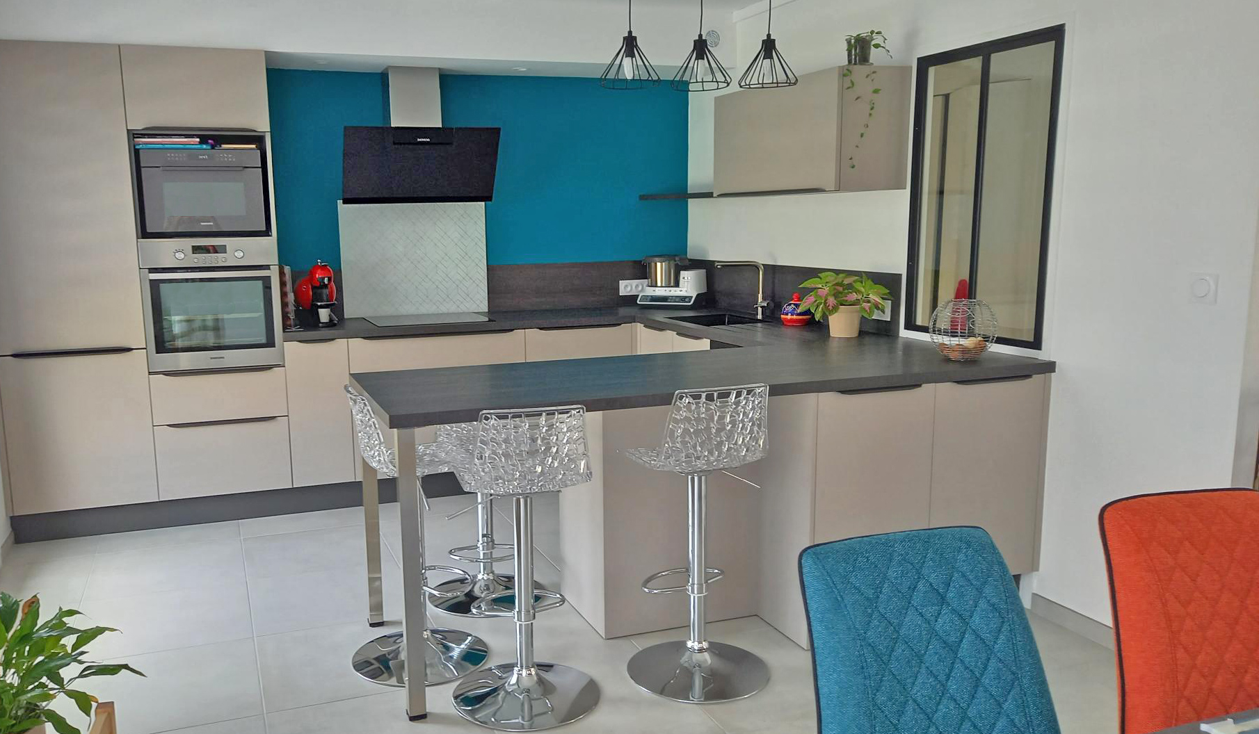 - Infos : Repenser une cuisine fermée pour obtenir un espace de vie ouvert sur le séjour a été un défi relevé avec succès.